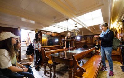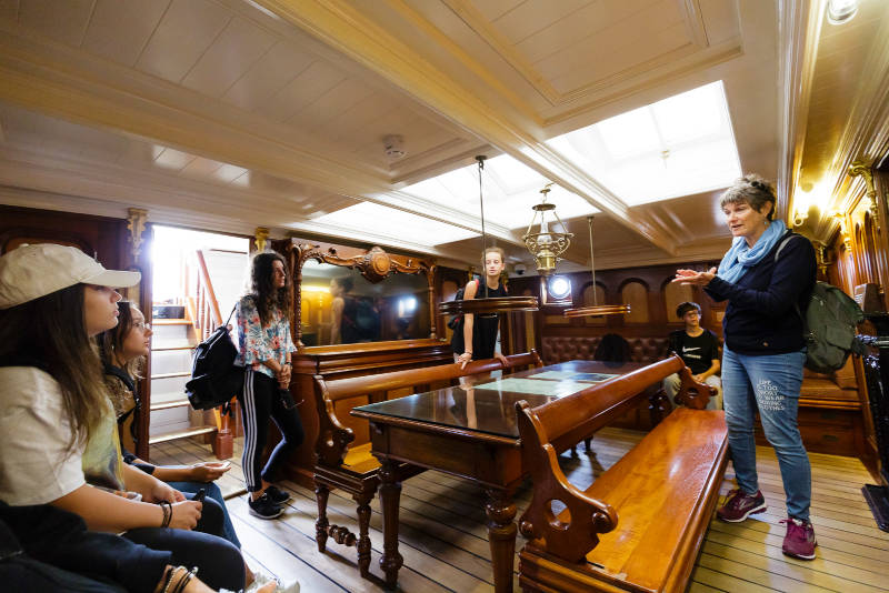 Conoce al equipo y escucha sus cautivadoras historias, explora las innovaciones a través de exposiciones y pantallas interactivas, y toca la estructura original del barco. Desciende a la bodega inferior para descubrir dónde se almacenaba la preciada carga. ¡Aventúrate bajo los imponentes mástiles que llevan más de 11 millas de aparejo!