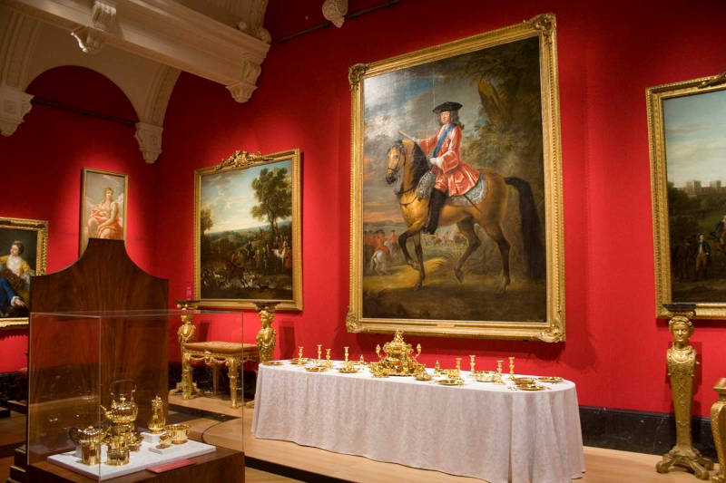Admira la opulencia de las decoraciones reales expuestas en la galería.