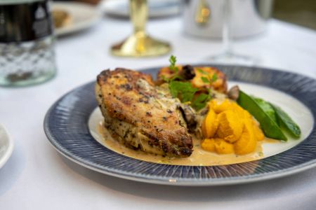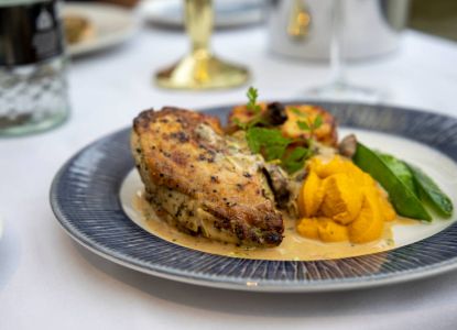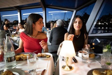 Disfruta de una cena de 4 platos con vino mientras navegas por el Támesis en un ambiente elegante y relajado.